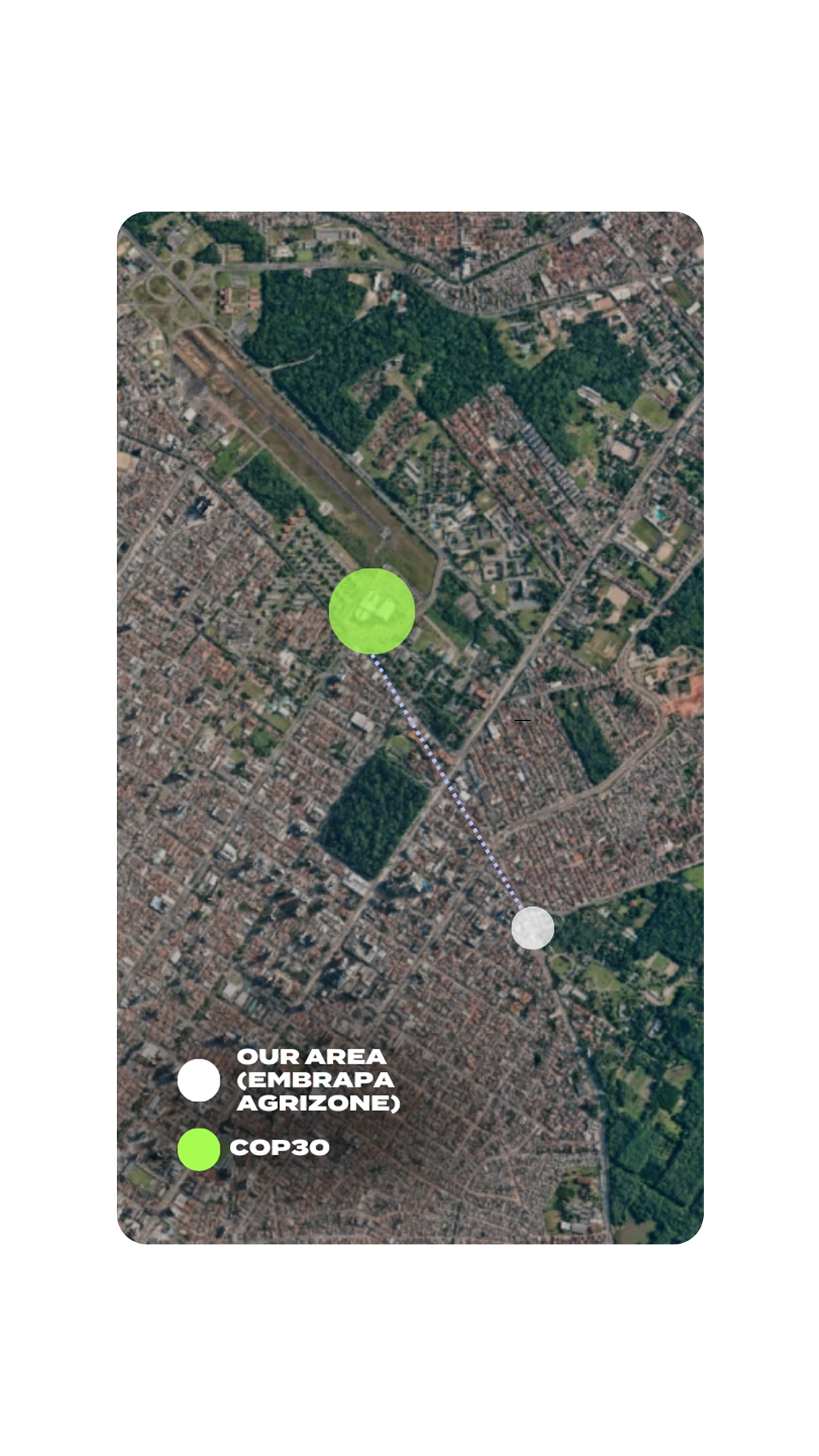 The project is rooted in the heart of COP30: 500 hectares around Belém—400 hectares of ecological forest restoration and 100 hectares of agroforestry systems. It combines agroecology and ecological restoration while engaging local smallholder farmers to recover land degraded by fires and the lack of technical support for sustainable practices.