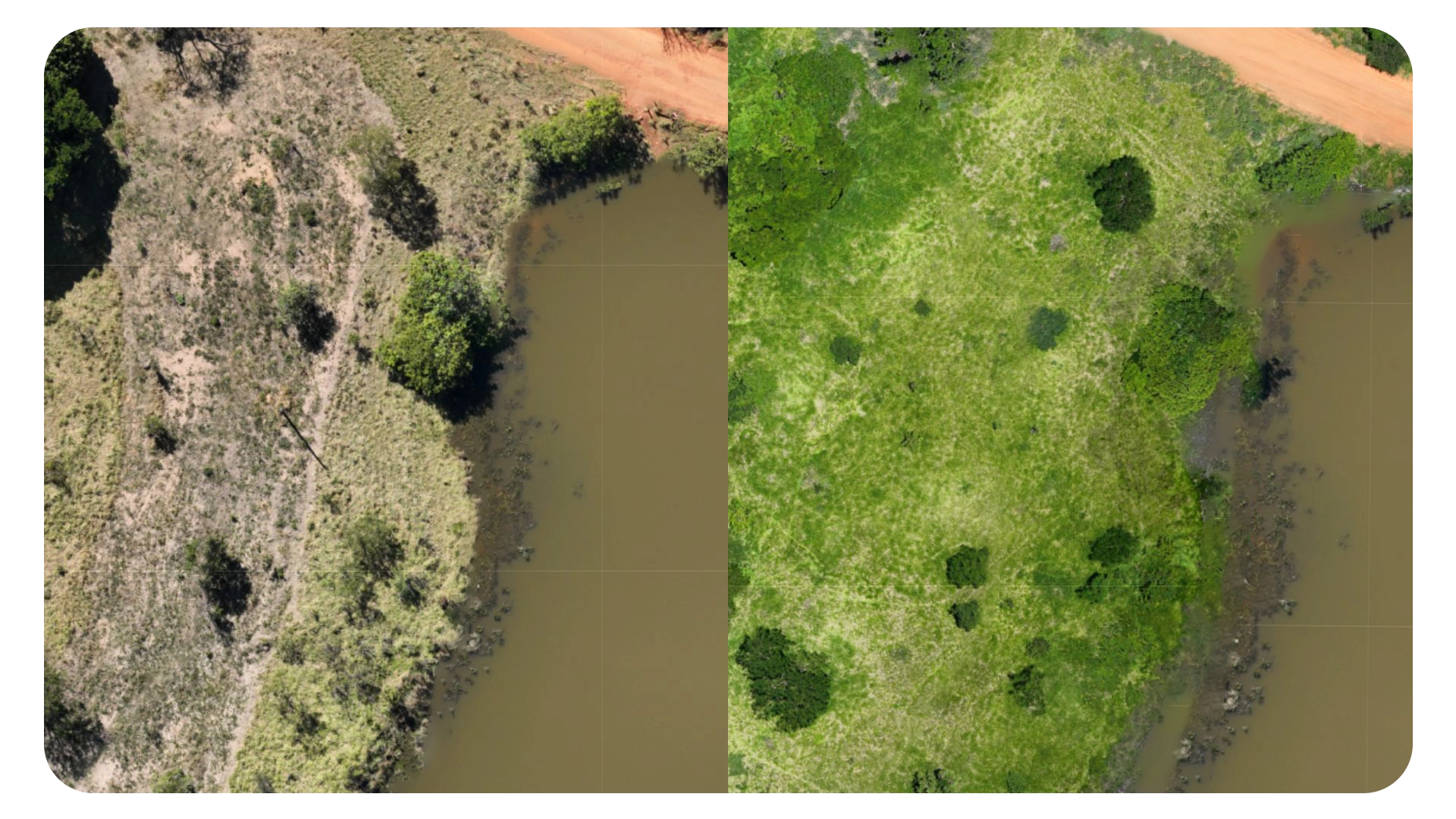 Nous combinons analyse du sol, capsules de graines, IA et drones pour restaurer la fertilité et la biodiversité.