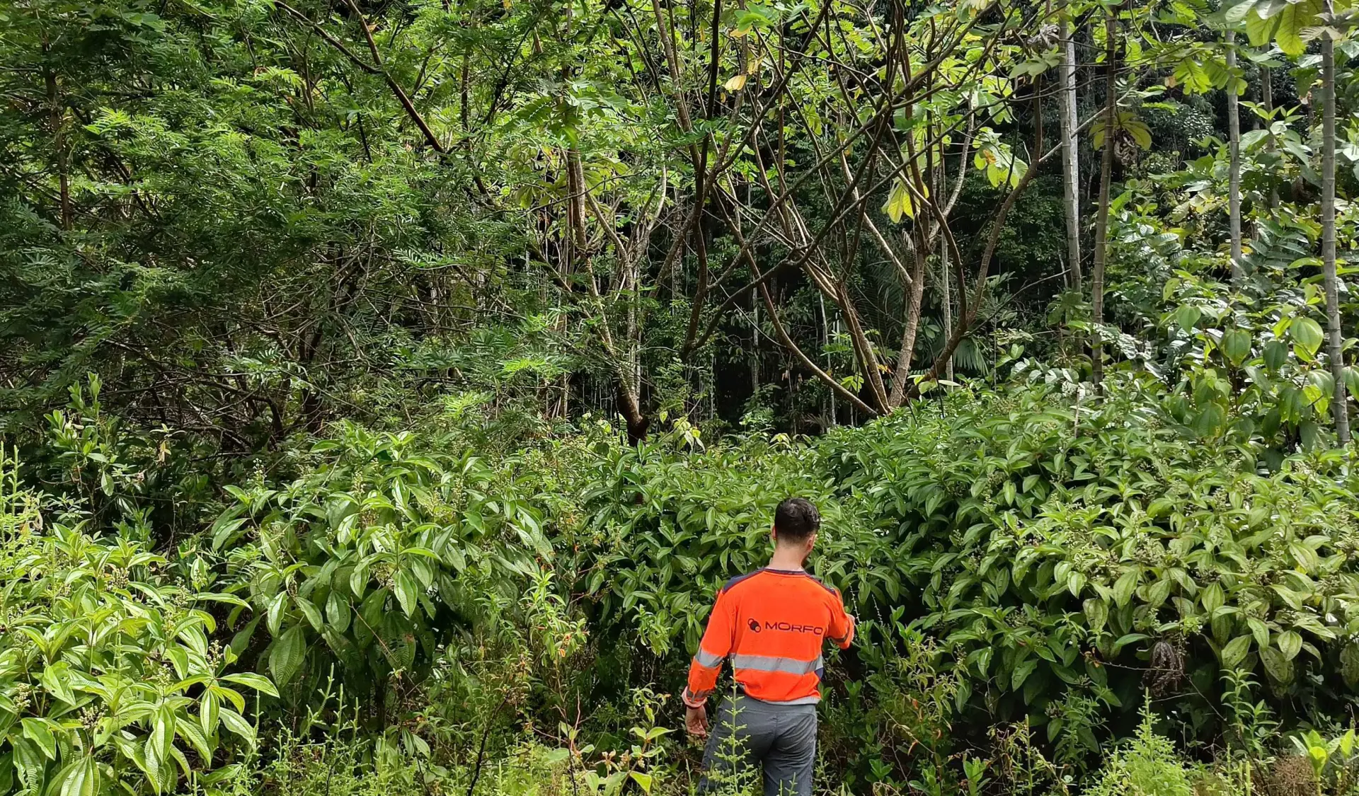 A MORFO combina plantio manual com mudas, drones com cápsulas de sementes (tecnologia patenteada), mecanização com subsolagem e roçada, nucleação e regeneração natural assistida. A combinação é escolhida hectare por hectare. 100% da preparação de solo e manutenção pós-plantio é realizada por populações locais.